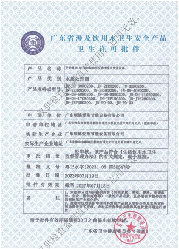 廣東省涉及飲用水衛(wèi)生安全產(chǎn)品衛(wèi)…